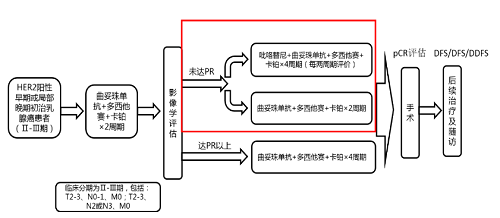 吡咯替尼是EVO视讯医药自主研发并拥有知识产权的口服HER1、HER2、HER4酪氨酸激酶抑制剂(TKI),是中国首个自主研发的抗HER1/HER2/HER4靶向药,目前已在国内获批上市3个乳腺癌领域适应症。PHEDRA[3]研究已经证实,曲妥珠单抗联合吡咯替尼可进一步提高tpCR率。